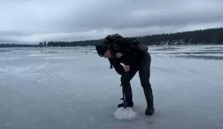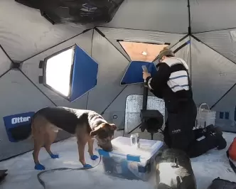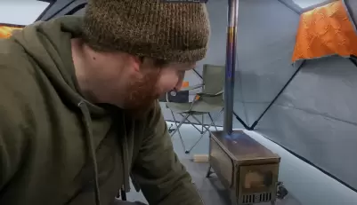 شخصان يستخدمان الخيام + مواقد مشاهدة النار