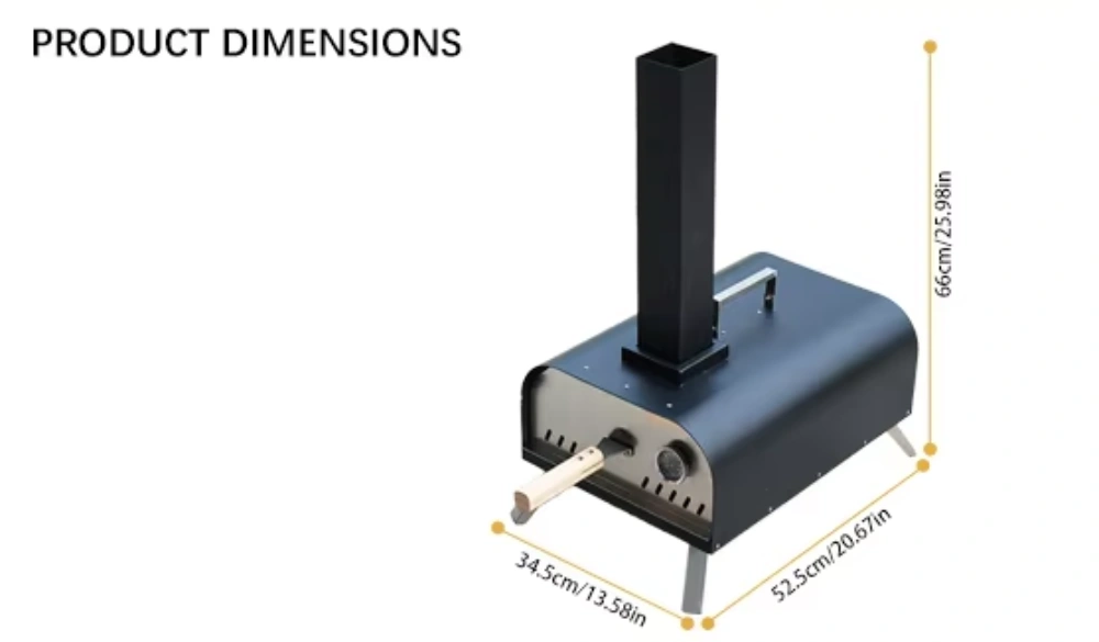 | الميزات الرئيسية | مدخنة قابلة للفصل، حجر البيتزا، مقياس حرارة الخبز عالي الدقة، أرجل دعم قابلة للطي |