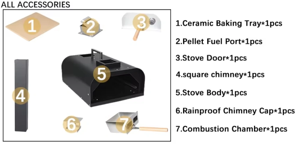 8. مجموعة الملحقات الكاملة تتضمن: ملعقة بيتزا قياسية، وأنبوب عادم، ولوح حجري، وما إلى ذلك، جاهزة للاستخدام عند الفتح - لا حاجة إلى عمليات شراء إضافية.